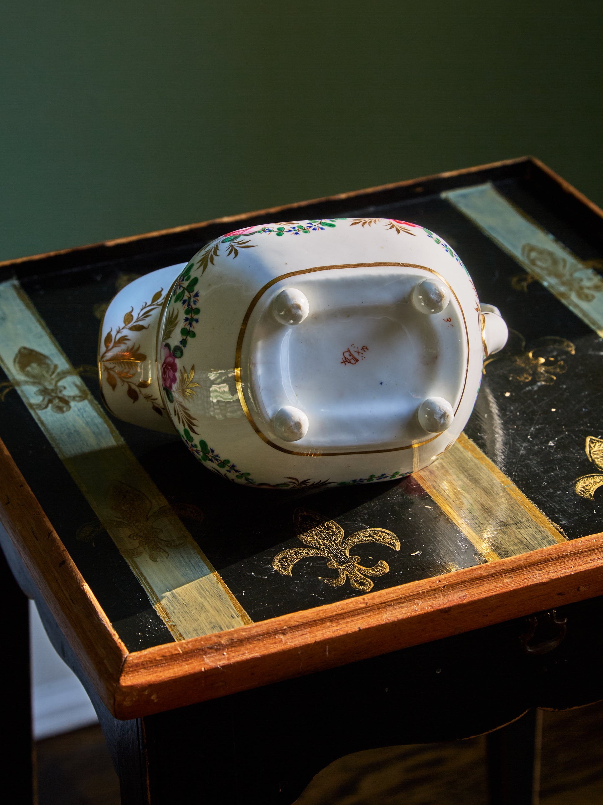 Our cream jug is elegant in form, with a distinctive curved handle and a graceful spout. The jug is in excellent condition with its gilding largely intact. Its naturalistic polychrome floral sprays were a popular form of decoration on Derby porcelain, gaining popularity in the late 1820s and remaining relevant to this day.