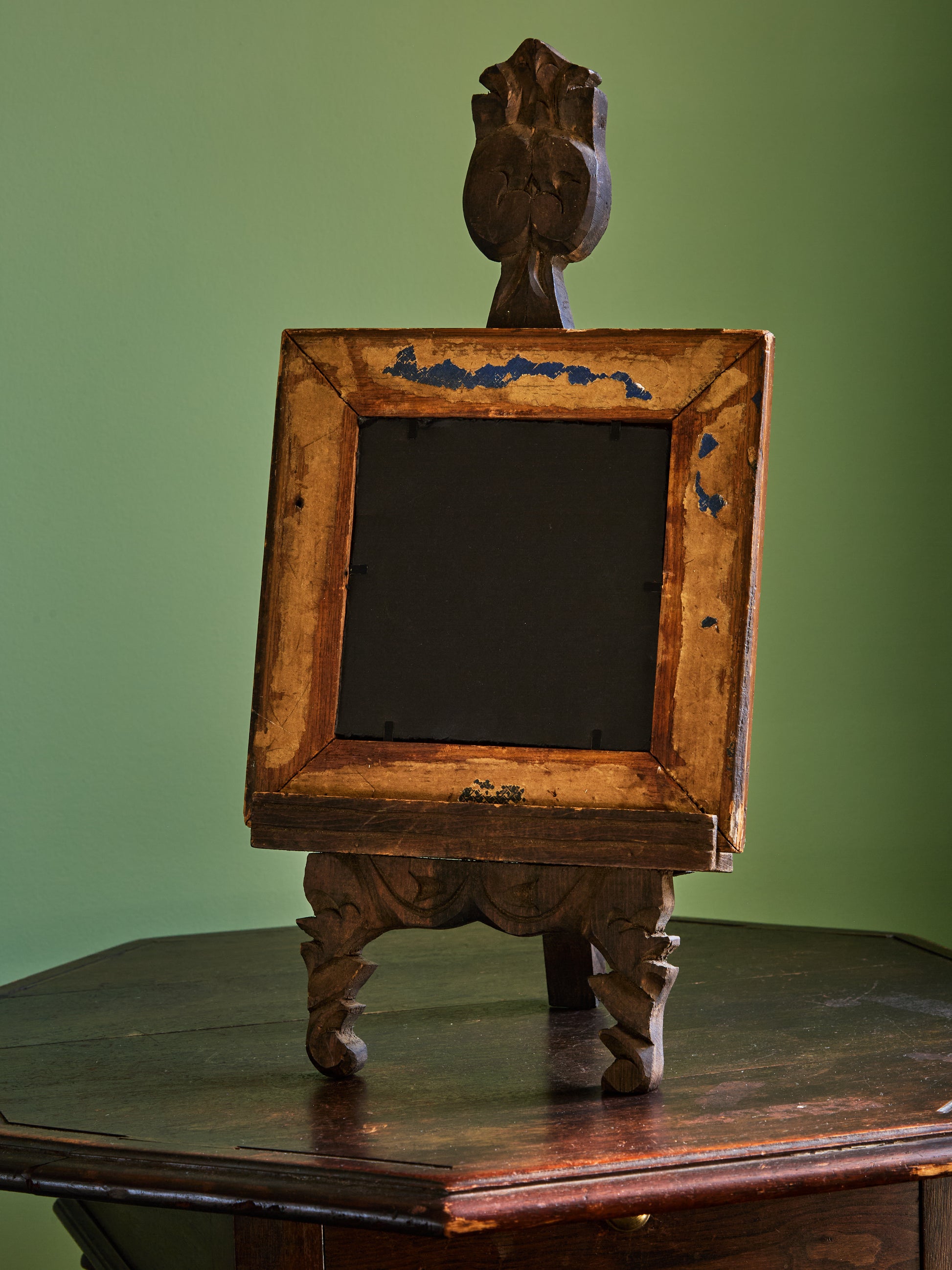 This 1970s oil on canvas captures the quiet presence of three houseplants in simple clay pots, painted with an eye for everyday beauty and calm. The artist highlights the simple beauty of greenery with a warm, organic palette that embodies the cozy, nature-inspired aesthetic of the decade. It is set in its original intricately carved dark wooden frame, and signed and dated by the artist. Sourced in Brimfield, Massachusetts.
